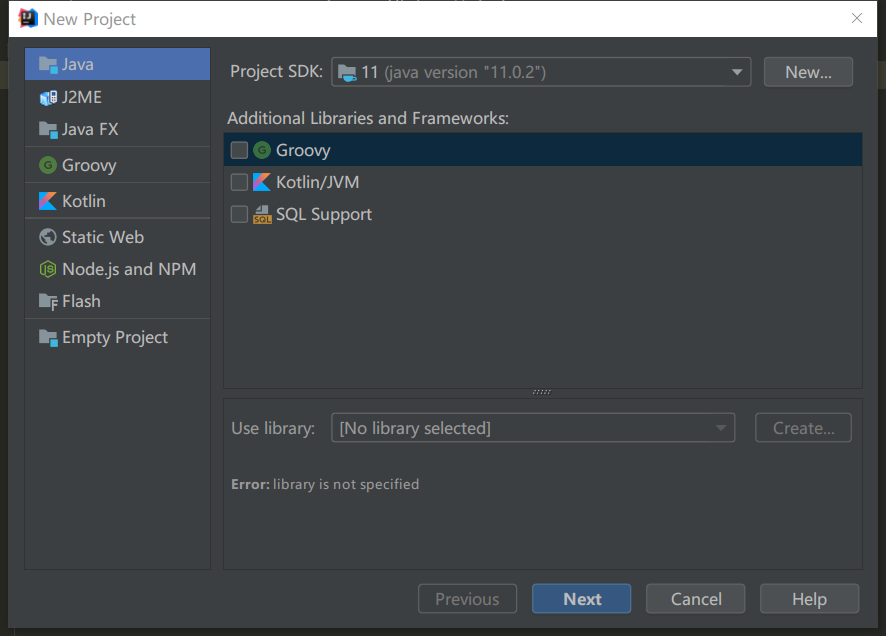 - 新建一个项目,选择好 SDK