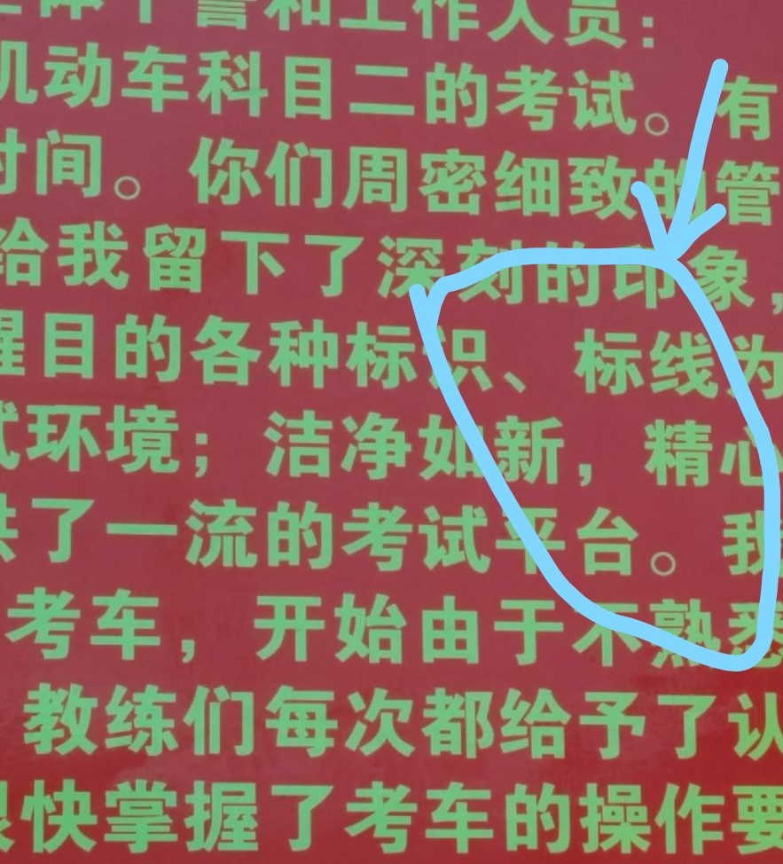 这是我考科目二在考场看到的感谢信中出现的中文排版里的 ‘river’ 现象: