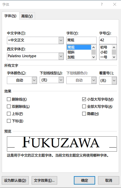 Word 中只要在字体面板字体选项卡中勾选上「小型大写字母」就好。
